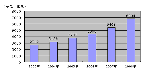 2003—2008年,全國財(cái)政社會保障和就業(yè)支出從2712億元增長到6804億元,年均增速為16.7%(見下圖)。2009年,全國財(cái)政社會保障和就業(yè)支出7606.68億元,又比2008年增長11.8%。