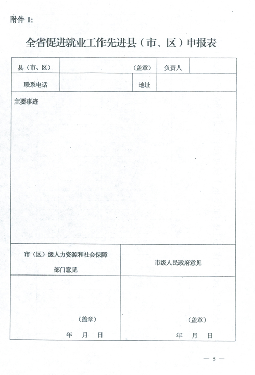 附件:1、全省促進(jìn)就業(yè)工作先進(jìn)縣(市、區(qū))申報(bào)表