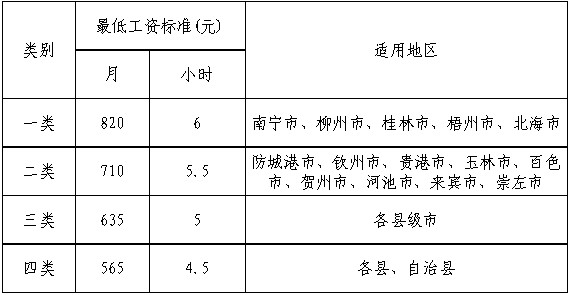 附件:廣西壯族自治區(qū)職工最低工資標準及適用地區(qū)