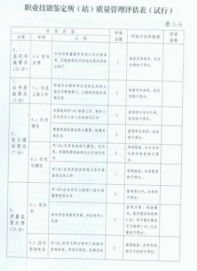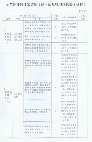 2.職業(yè)技能鑒定所(站)質量管理評估表(試行)