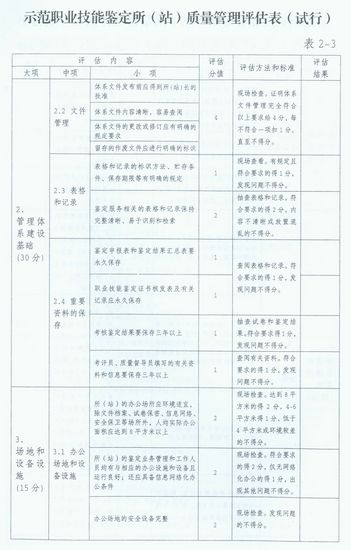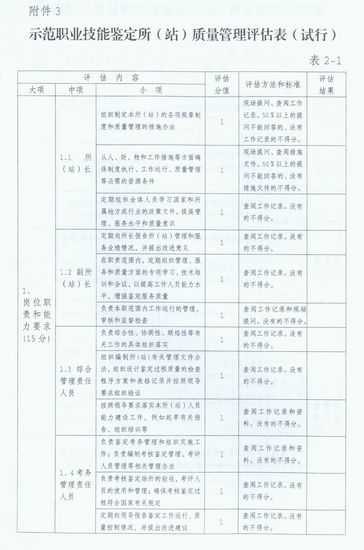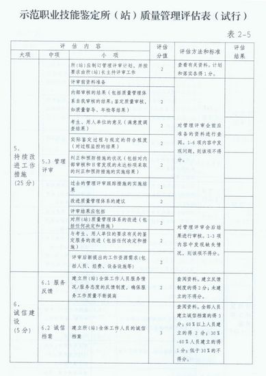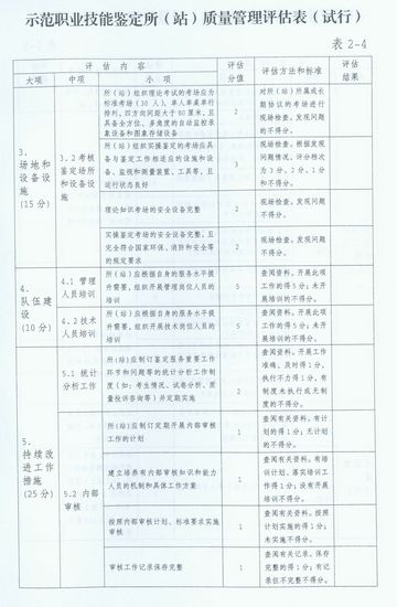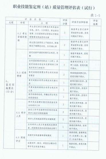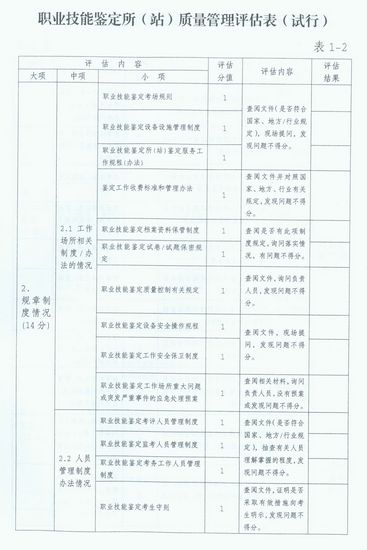 2.職業(yè)技能鑒定所(站)質(zhì)量管理評估表(試行)