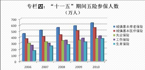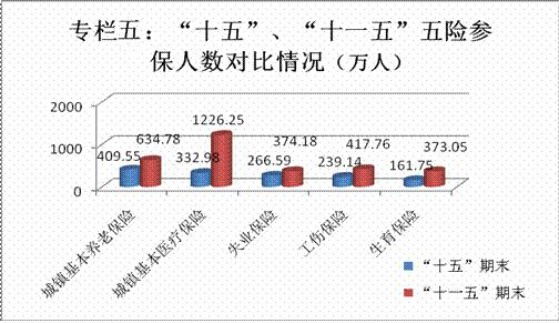 ——社會(huì)保障體系日益完善。統(tǒng)籌推進(jìn)社會(huì)保障制度改革,依法擴(kuò)大社會(huì)保障覆蓋面,加強(qiáng)對(duì)特殊群體和困難群體的社會(huì)保障,逐步提高社會(huì)保障水平。“十二五”期末,城鎮(zhèn)參加基本養(yǎng)老保險(xiǎn)人數(shù)達(dá)760萬(wàn)人,新型農(nóng)村社會(huì)養(yǎng)老保險(xiǎn)參保率達(dá)85%。城鄉(xiāng)三項(xiàng)基本醫(yī)療保險(xiǎn)參保人數(shù)達(dá)3610萬(wàn)人,參保率達(dá)95%以上,新型農(nóng)村合作醫(yī)療參合率穩(wěn)定在98%。失業(yè)保險(xiǎn)、工傷保險(xiǎn)、生育保險(xiǎn)參保分別達(dá)到435萬(wàn)人、500萬(wàn)人、445萬(wàn)人。