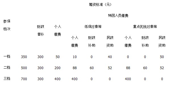 籌資水平調(diào)整后各檔次標(biāo)準(zhǔn)見下表: