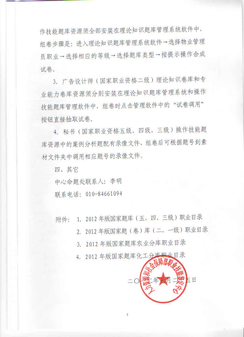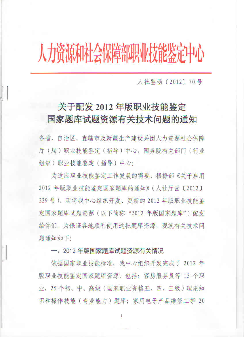 附件:《關(guān)于配發(fā)2012年版職業(yè)技能鑒定國家題庫試題資源有關(guān)技術(shù)問題的通知》(人社鑒函〔2012〕70號)