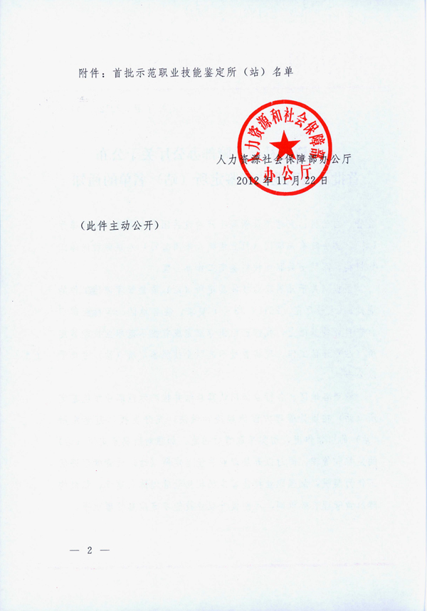 人力資源社會保障部辦公廳關于公布首批示范職業(yè)技能鑒定所(站)名單的通知(人社廳函[2012]544號)