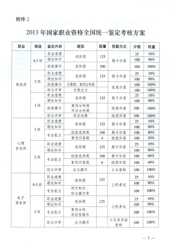 ????? 2.2013年國(guó)家職業(yè)資格全國(guó)統(tǒng)一鑒定考核方案
