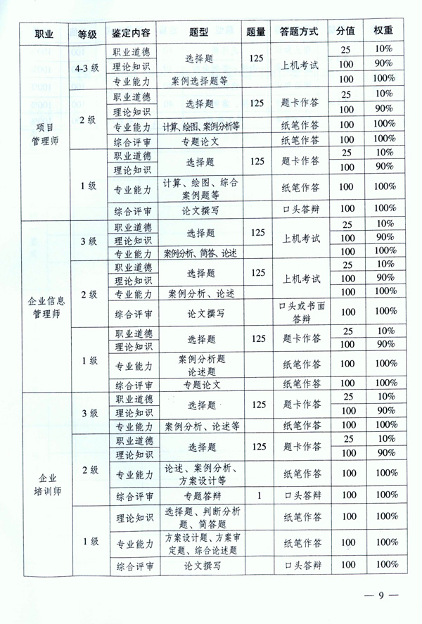 (二)2012年,我部組織專(zhuān)家對(duì)企業(yè)人力資源管理師、物流師、心理咨詢(xún)師、電子商務(wù)師、理財(cái)規(guī)劃師、項(xiàng)目管理師、企業(yè)信息管理師、秘書(shū)、營(yíng)銷(xiāo)師等9個(gè)全國(guó)統(tǒng)一鑒定職業(yè)的技能標(biāo)準(zhǔn)進(jìn)行了修訂,目前正待頒布。上述職業(yè)技能標(biāo)準(zhǔn)頒布后,涉及2013年下半年職業(yè)考核內(nèi)容和考核方式發(fā)生的變化,我部將另行通知。
