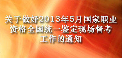 2013年上半年國家職業(yè)資格全國統(tǒng)一鑒定(以下簡稱“全國統(tǒng)一鑒定”)定于2013年5月18日至19日舉行。根據(jù)《關(guān)于做好2013年國家職業(yè)資格全國統(tǒng)一鑒定工作的通知》(人社部函〔2013〕33號)要求,為進一步做好此次全國統(tǒng)一鑒定現(xiàn)場督考工作,保證鑒定質(zhì)量,經(jīng)與我部職業(yè)能力建設(shè)司協(xié)商,我中心將派出6個質(zhì)量督導(dǎo)組赴部分地區(qū)開展現(xiàn)場督考(具體安排見附件1)及工作調(diào)研。現(xiàn)就有關(guān)事項通知如下: