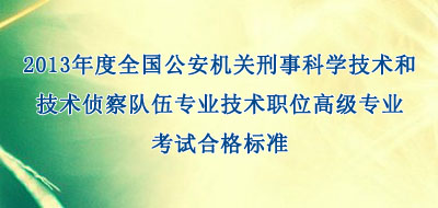 根據(jù)2013年度全國公安刑事科學技術(shù)和技術(shù)偵察隊伍專業(yè)技術(shù)職位高級專業(yè)考試數(shù)據(jù)統(tǒng)計分析,經(jīng)研究,現(xiàn)將考試合格標準及有關(guān)問題通知如下: