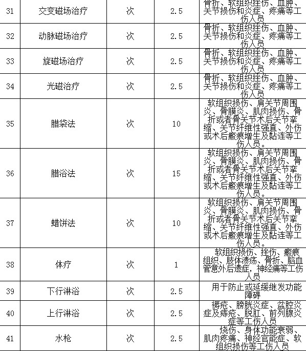 天津市工傷康復(fù)項目目錄
