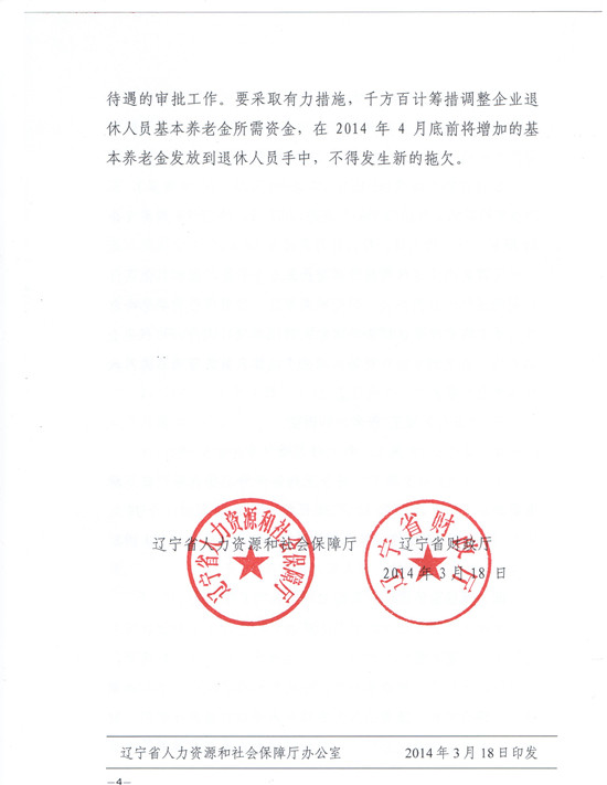 遼寧省關(guān)于2014年調(diào)整企業(yè)退休人員基本養(yǎng)老金的通知(遼人社發(fā)[2014]8號)