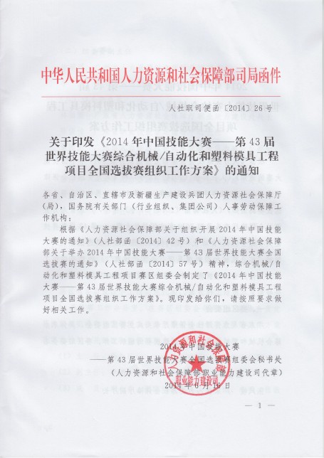 2014年中國技能大賽——第43屆世界技能大賽綜合機械/自動化和塑料模具工程項目全國選拔賽組織工作方案