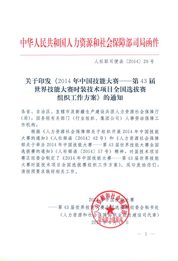 2014年中國技能大賽——第43屆世界技能大賽時裝技術(shù)項目全國選拔賽組織工作方案