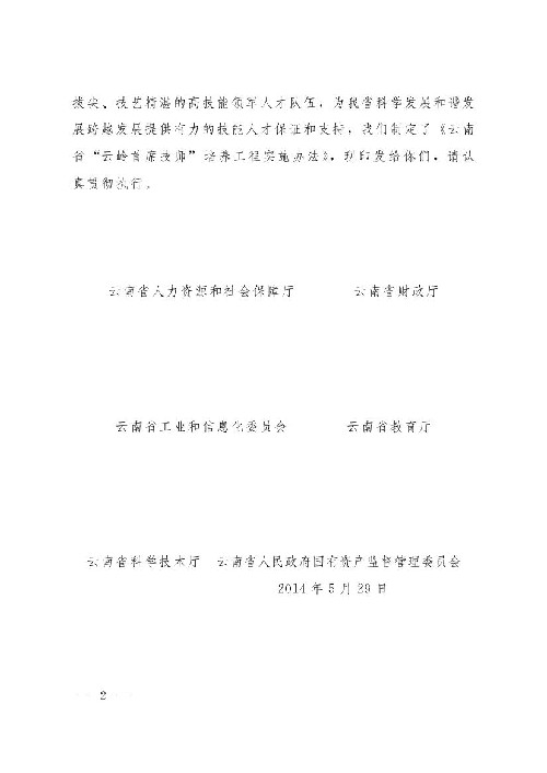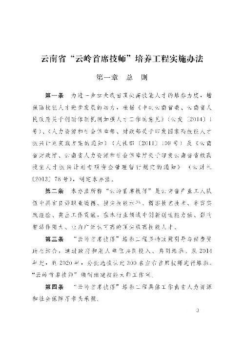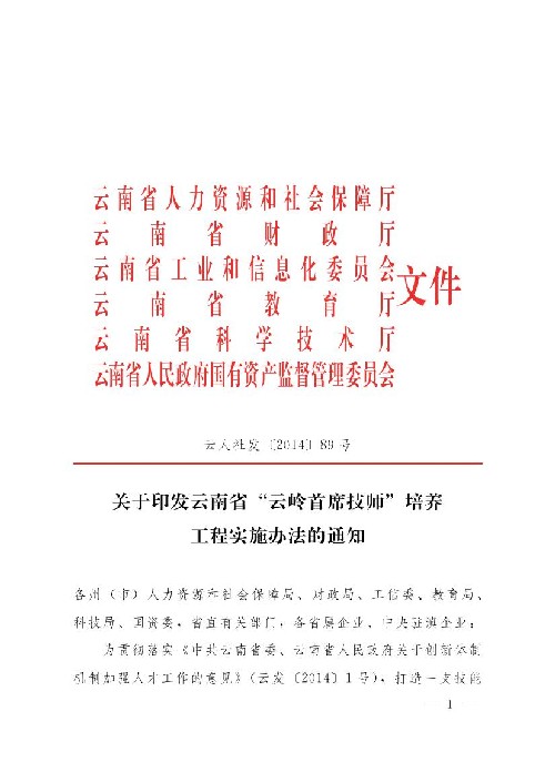關(guān)于印發(fā)云南省“云嶺首席技師”培養(yǎng)工程試試辦法的通知(云人社發(fā)[2014]88號)