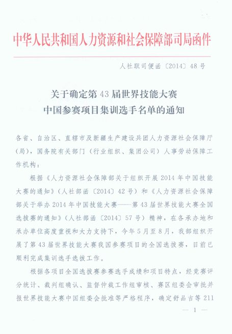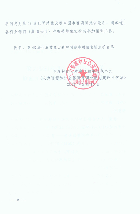?第43屆世界技能大賽中國參賽項(xiàng)目集訓(xùn)選手名單