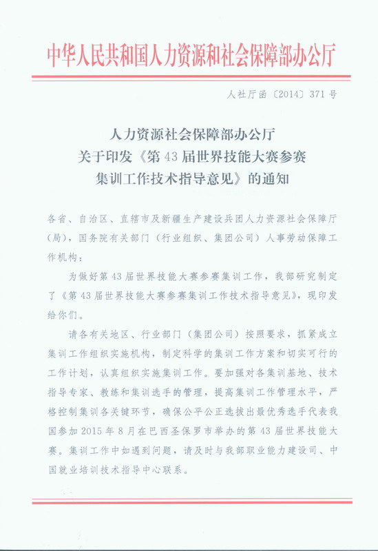 點(diǎn)擊下載:第43屆世界技能大賽參賽集訓(xùn)工作技術(shù)指導(dǎo)意見(jiàn)