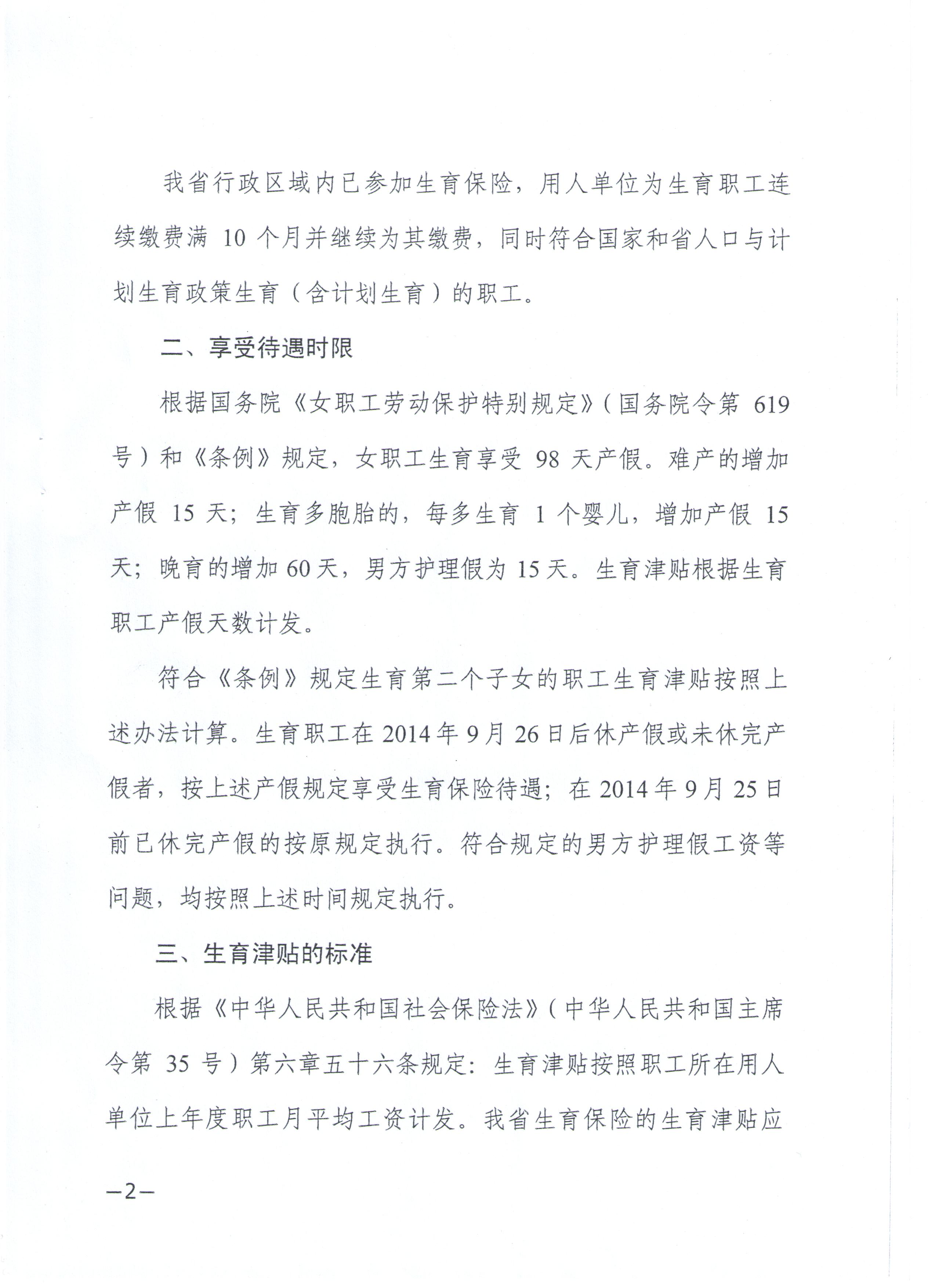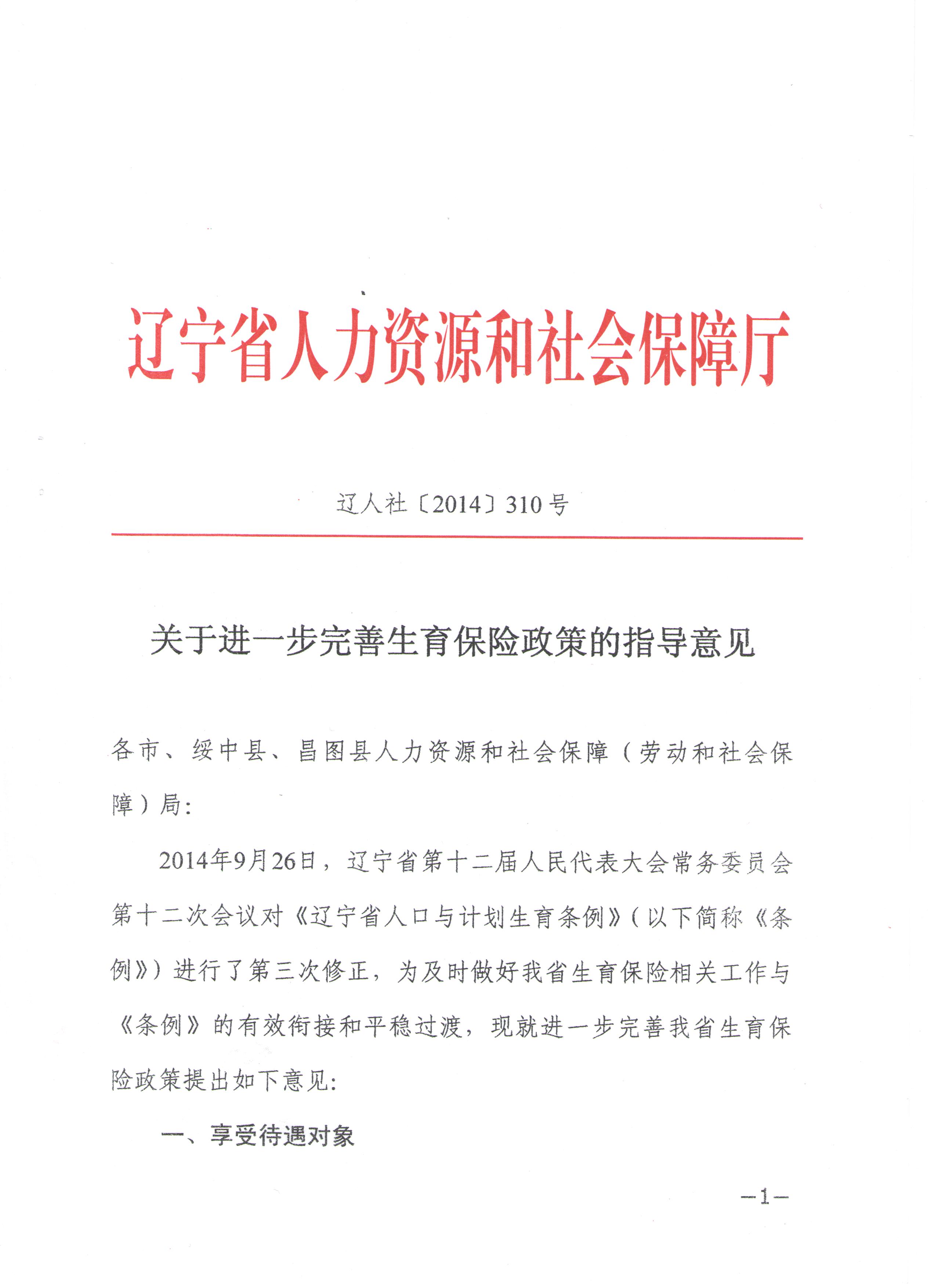 遼寧:關于進一步完善生育保險政策的指導意見(遼人社[2014]310號)
