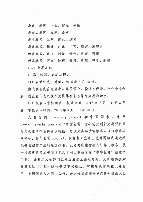 二、本次大賽的復(fù)賽階段分八大賽區(qū)組織實(shí)施,大賽組委會(huì)將依據(jù)高校集中、交通便利且有承辦意愿等條件,合理確定賽區(qū)承辦城市。有承辦意愿的城市請(qǐng)與所在省級(jí)人社部門溝通后,將申請(qǐng)材料于2015年4月15日前報(bào)大賽組委會(huì)秘書處。八大賽區(qū)分別建立賽區(qū)組委會(huì)及省際協(xié)調(diào)機(jī)制,承辦復(fù)賽的城市應(yīng)主動(dòng)加強(qiáng)與本賽區(qū)內(nèi)各有關(guān)省份的溝通聯(lián)系,按照大賽組委會(huì)統(tǒng)一安排,認(rèn)真做好復(fù)賽籌備工作,制訂具體實(shí)施方案并報(bào)大賽組委會(huì)審定。