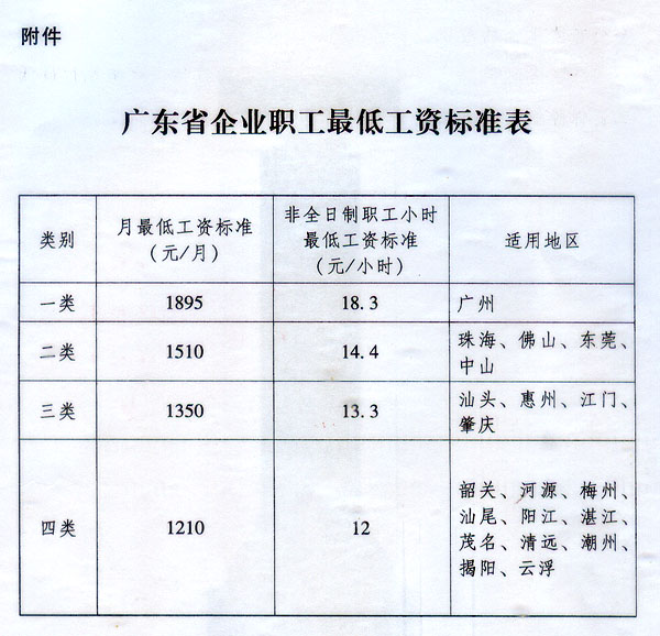 附件:廣東省企業(yè)職工最低工資標(biāo)準(zhǔn)表
