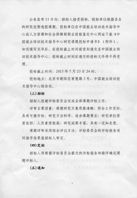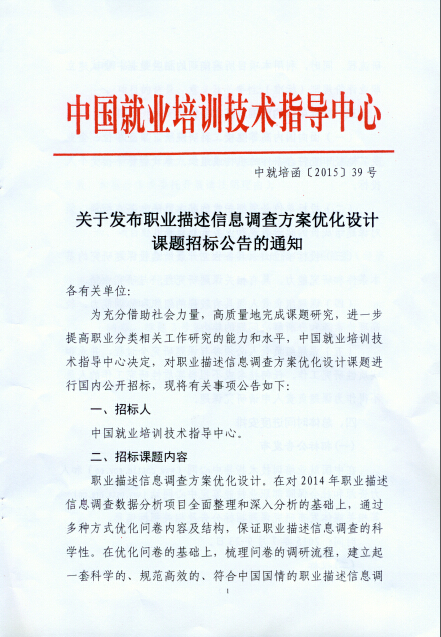 關(guān)于發(fā)布職業(yè)描述信息調(diào)查方案優(yōu)化設(shè)計課題招標(biāo)公告的通知(中就培函〔2015〕39號)