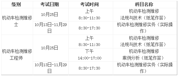 (二)《機動車檢測維修實務(wù)》科目考試采用現(xiàn)場實際操作的方式進行,具體考試安排由交通運輸考試中心另行通知。