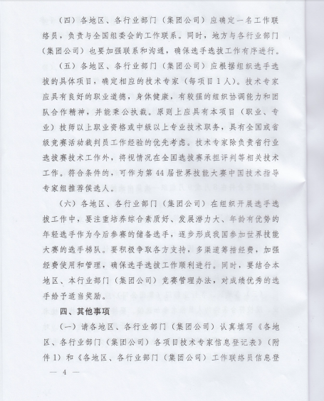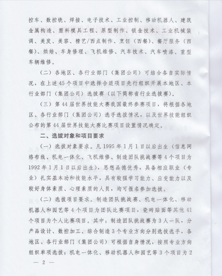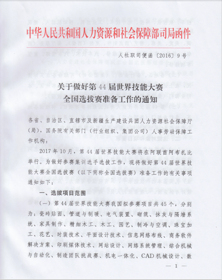 點(diǎn)擊下載附件:關(guān)于做好第44屆世界技能大賽全國(guó)選拔賽準(zhǔn)備工作的通知