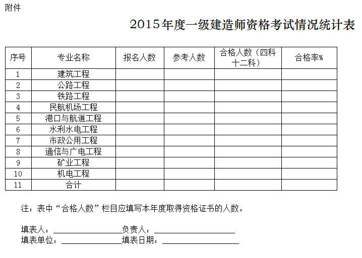 附件:2015年度一級建造師資格考試情況統(tǒng)計表