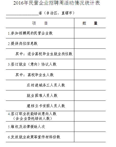 附件:2016年民營(yíng)企業(yè)招聘周活動(dòng)情況統(tǒng)計(jì)表