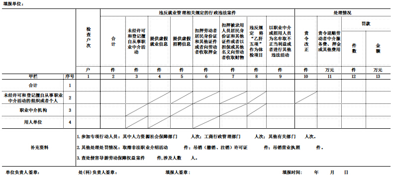 附件:清理整頓人力資源市場(chǎng)秩序?qū)m?xiàng)行動(dòng)情況統(tǒng)計(jì)表