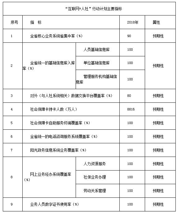 大力推進(jìn)“互聯(lián)網(wǎng)+人社”建設(shè),不斷創(chuàng)新信息化工作方法,充分發(fā)揮信息化對人力資源社會保障業(yè)務(wù)工作的“引領(lǐng)、支撐、服務(wù)、基礎(chǔ)”作用,大力推動全省人力資源社會保障工作整體創(chuàng)新,到2018年基本實(shí)現(xiàn)以下目標(biāo):