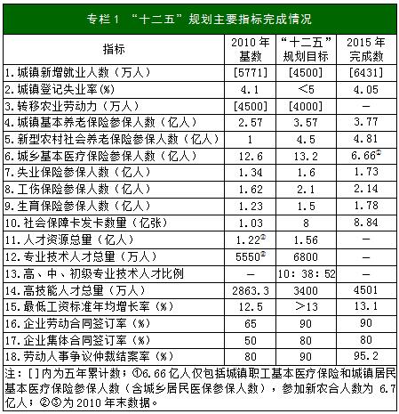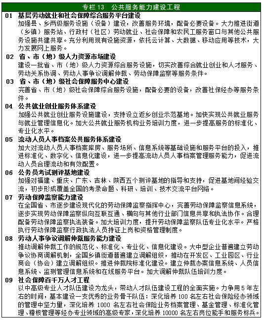 人力資源和社會保障事業(yè)發(fā)展“十三五”規(guī)劃綱要目錄
