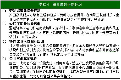 推行終身職業(yè)技能培訓制度,構建覆蓋城鄉(xiāng)全體勞動者、貫穿勞動者學習工作終身、適應勞動者和市場需求的職業(yè)培訓制度,完善市場配置資源、勞動者自主選擇、政府購買服務和依法監(jiān)管的職業(yè)培訓工作機制,全方位提升人力資本質量和勞動者就業(yè)創(chuàng)業(yè)能力。加大培訓資金投入,提高培訓質量。及時認定發(fā)布新職業(yè)并制定職業(yè)技能標準。大力開展多種形式的就業(yè)技能培訓、崗位技能提升培訓和創(chuàng)業(yè)培訓。開展勞動者素質提升行動,開展貧困家庭子女、未升學初高中畢業(yè)生、農(nóng)民工、失業(yè)人員和轉崗職工、退役軍人和殘疾人免費接受職業(yè)培訓行動。發(fā)揮企業(yè)在職業(yè)培訓中的主體作用,實施好農(nóng)民工職業(yè)技能提升計劃等專項培訓行動。大力推行企業(yè)新型學徒制、國家基本職業(yè)培訓包、校企合作、互聯(lián)網(wǎng)+職業(yè)培訓等培訓模式。開展職業(yè)培訓國際交流與合作。