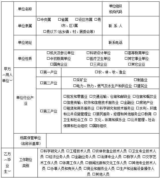 ③到企業(yè)就業(yè)的,提供《勞動合同書》和《用人單位基本信息登記表》(見附表)或《就業(yè)協(xié)議書》;