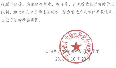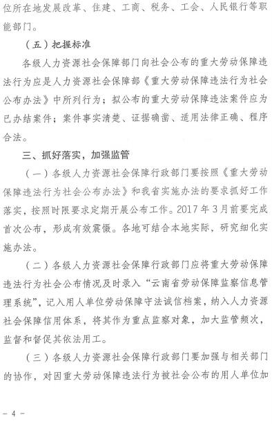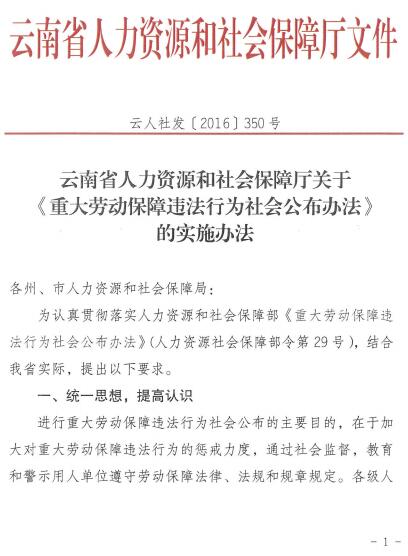 云南省人力資源和社會保障廳關(guān)于《重大勞動保障違法行為社會公布辦法》的實施辦法(云人社發(fā)〔2016〕350號)