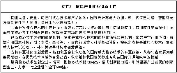 信息產(chǎn)業(yè)生態(tài)體系初步形成,重點領(lǐng)域核心技術(shù)取得突破。集成電路實現(xiàn)28納米(nm)工藝規(guī)模量產(chǎn),設(shè)計水平邁向16/14nm。“神威?太湖之光”超級計算機繼“天河二號”后蟬聯(lián)世界超級計算機500強榜首。高世代液晶面板生產(chǎn)線建設(shè)取得重大進展,邁向10.5代線。2015年,信息產(chǎn)業(yè)收入規(guī)模達到17.1萬億元,智能終端、通信設(shè)備等多個領(lǐng)域的電子信息產(chǎn)品產(chǎn)量居全球第一,涌現(xiàn)出一批世界級的網(wǎng)信企業(yè)。