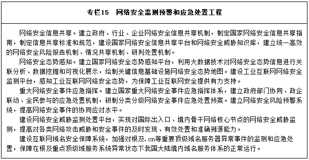 強化網(wǎng)絡(luò)安全頂層設(shè)計。制定實施國家網(wǎng)絡(luò)空間安全戰(zhàn)略。完善網(wǎng)絡(luò)安全法律法規(guī)體系,推動出臺網(wǎng)絡(luò)安全法、密碼法、個人信息保護法,研究制定未成年人網(wǎng)絡(luò)保護條例。建立完善國家網(wǎng)絡(luò)安全相關(guān)制度,健全完善國家網(wǎng)絡(luò)與信息安全信息通報預(yù)警機制,健全網(wǎng)絡(luò)安全標(biāo)準(zhǔn)體系。加強網(wǎng)絡(luò)空間安全學(xué)科專業(yè)建設(shè),創(chuàng)建一流網(wǎng)絡(luò)安全學(xué)院。