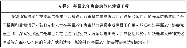 到2020年,老齡事業(yè)發(fā)展整體水平明顯提升,養(yǎng)老體系更加健全完善,及時應對、科學應對、綜合應對人口老齡化的社會基礎更加牢固。