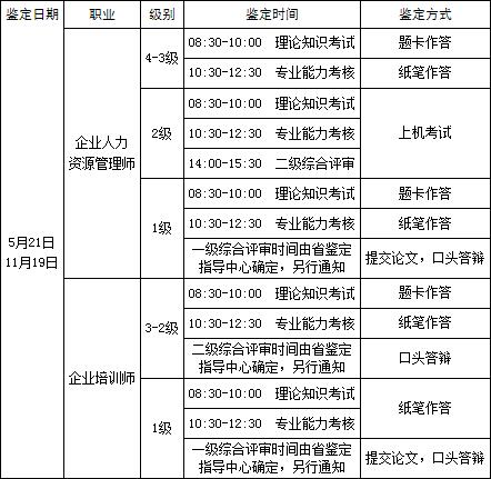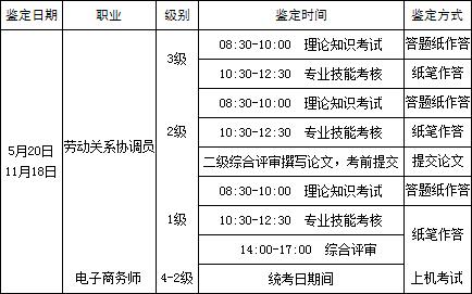 (二)全省統(tǒng)一鑒定時(shí)間是5月20日和11月18日,具體職業(yè)等級(jí)和安排見(jiàn)附件2。