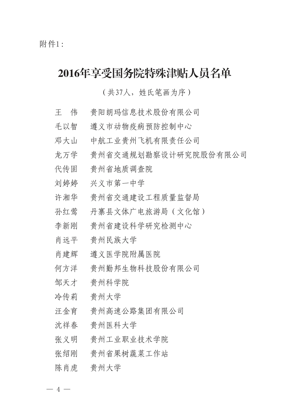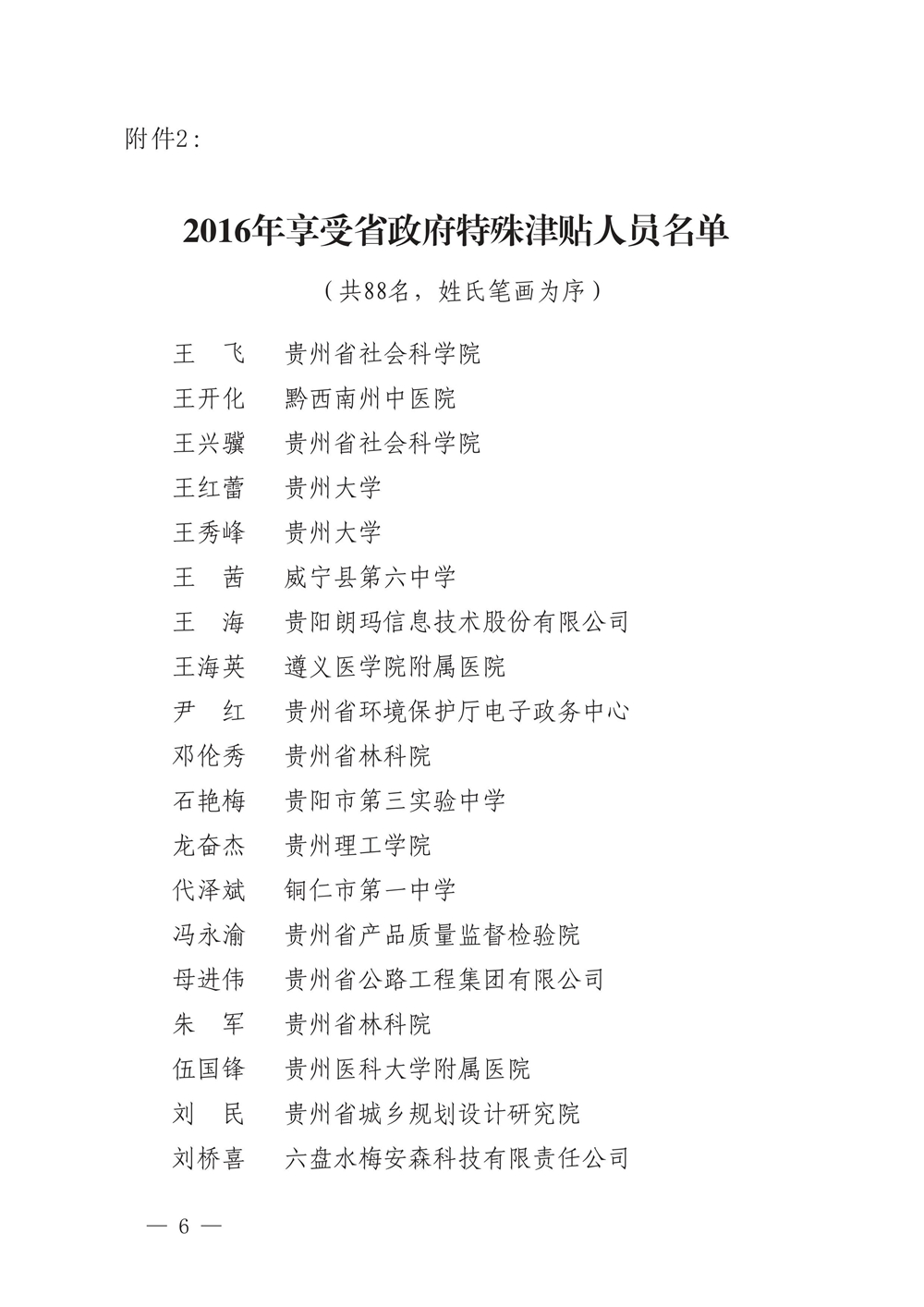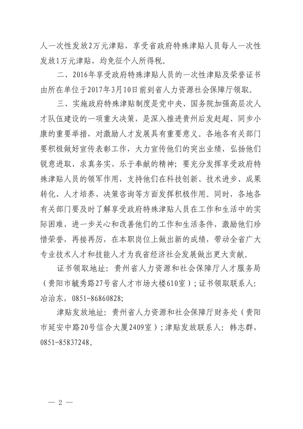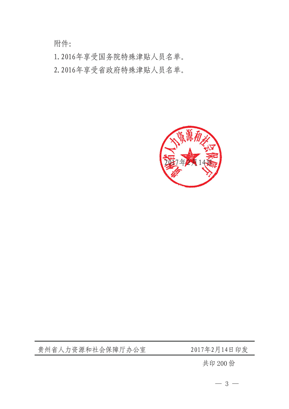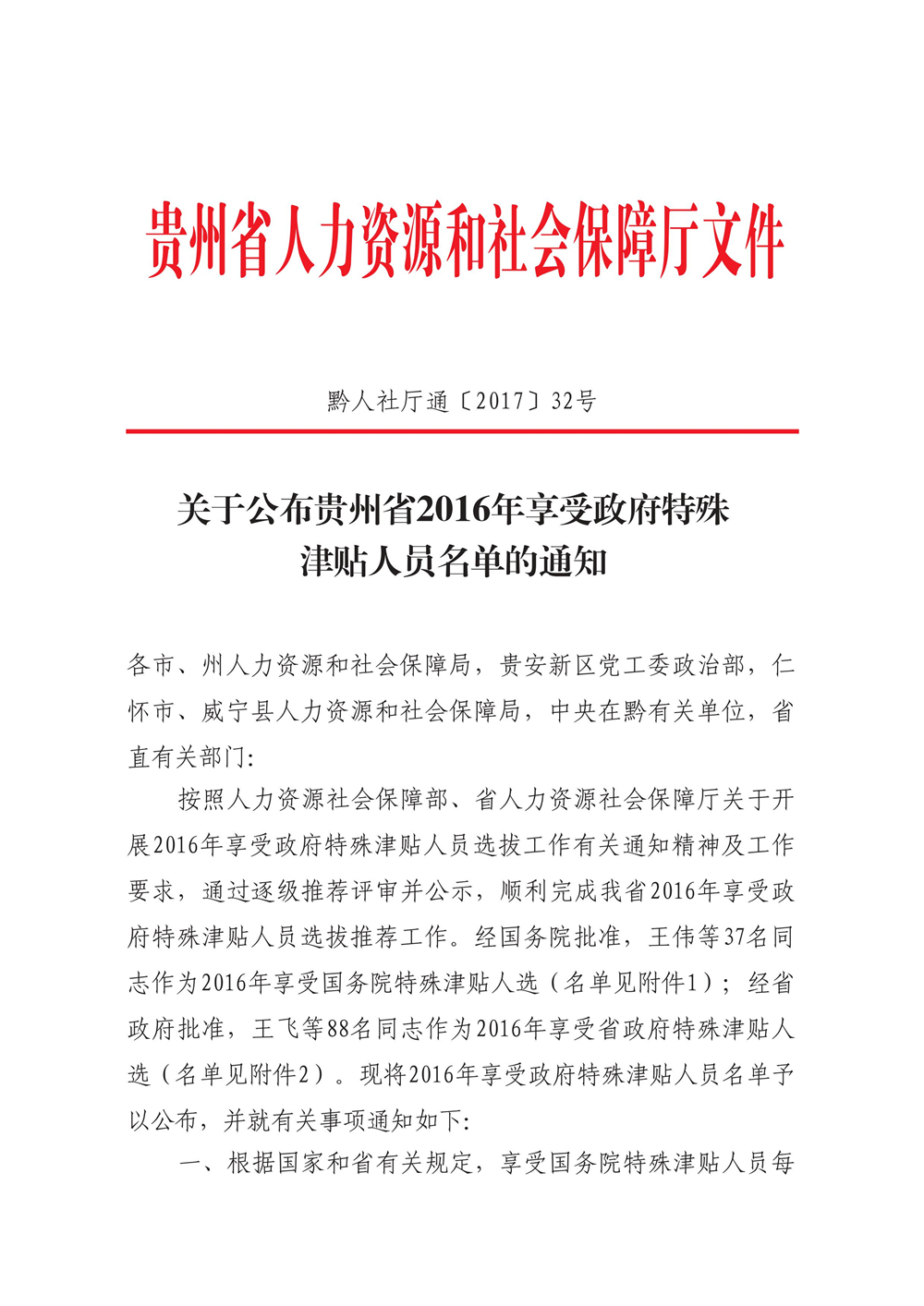 貴州省人力資源和社會保障廳關于公布貴州省2016年享受政府特殊津貼人員名單的通知(黔人社廳通〔2017〕32號)