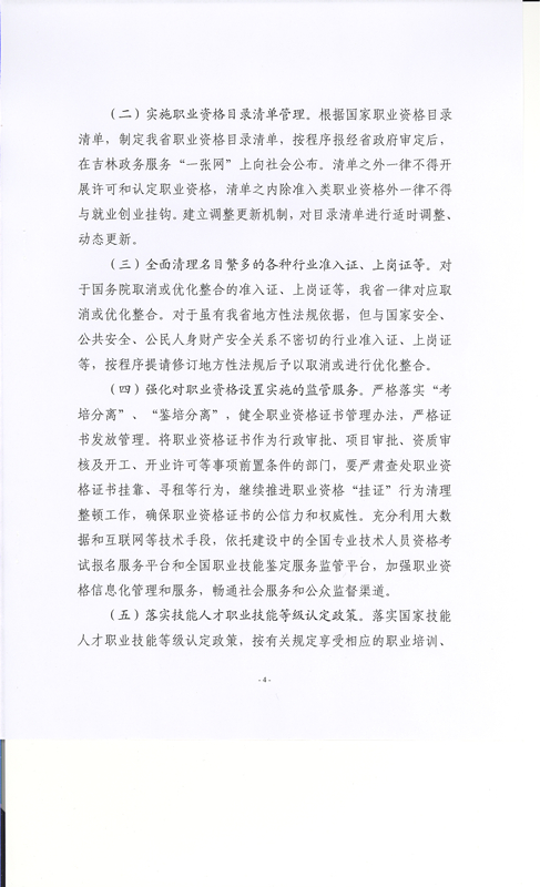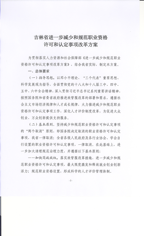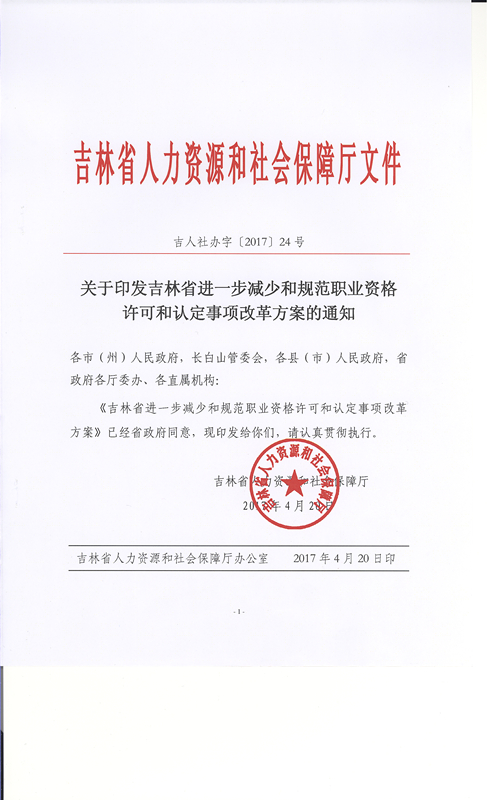 吉林省人力資源和社會(huì)保障廳關(guān)于印發(fā)吉林省進(jìn)一步減少和規(guī)范職業(yè)資格許可和認(rèn)定事項(xiàng)改革方案的通知(吉人社辦字〔2017〕24號(hào))