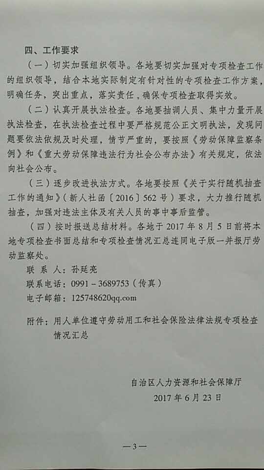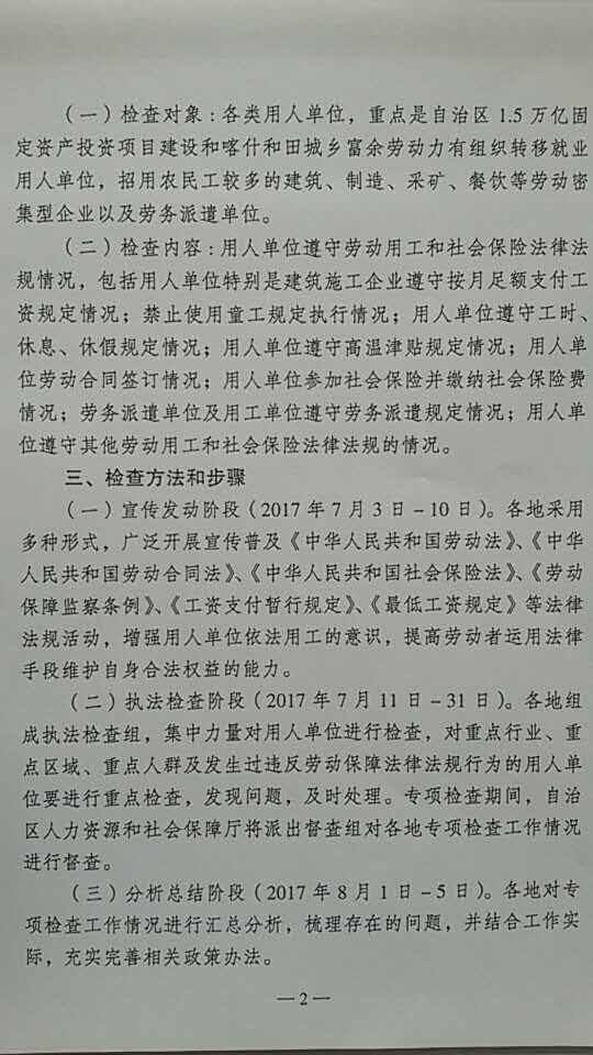 新疆維吾爾自治區(qū)人社廳關(guān)于開展用人單位遵守勞動用工和社會保險(xiǎn)法律法規(guī)情況專項(xiàng)檢查的通知