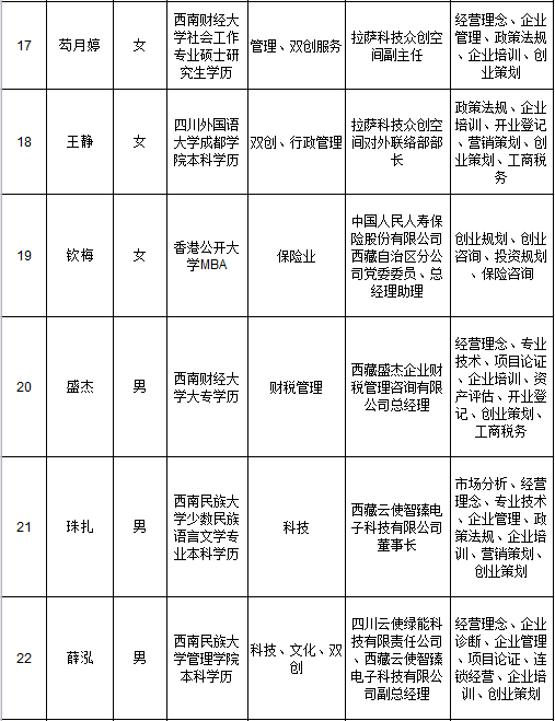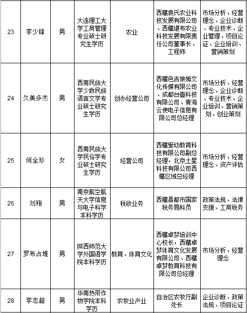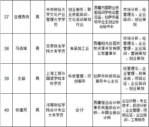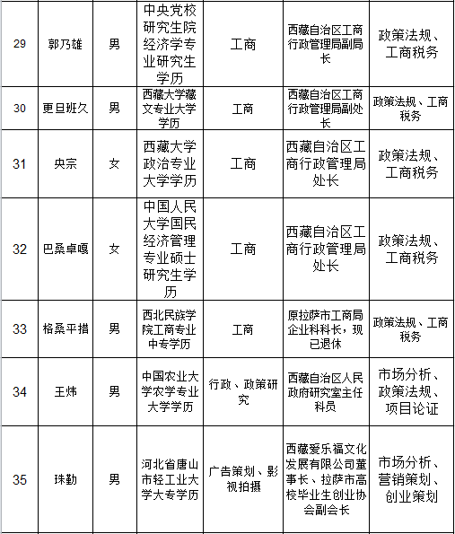 附件:《西藏自治區(qū)創(chuàng)業(yè)服務(wù)指導(dǎo)專家名單》