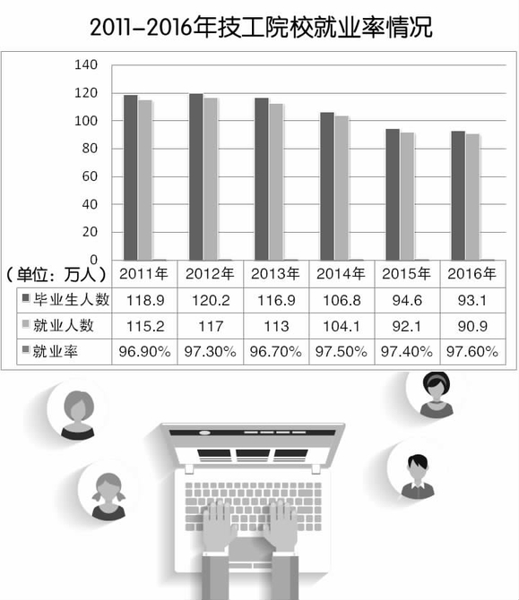 推動(dòng)技工教育改革創(chuàng)新,必須緊密圍繞解決新時(shí)代“人民日益增長的美好生活需要和不平衡不充分的發(fā)展之間的矛盾”,制定政策措施要更加注重公平,著重解決城鄉(xiāng)之間、區(qū)域之間、社會(huì)各階層職業(yè)技能發(fā)展差異問題,努力消除勞動(dòng)者技能鴻溝,促進(jìn)技工教育與技能培訓(xùn)普惠均等,切實(shí)解決我國技工教育和培訓(xùn)發(fā)展與經(jīng)濟(jì)社會(huì)發(fā)展不匹配、各地技工教育和培訓(xùn)發(fā)展不均衡的矛盾,為全社會(huì)提供更加充分、優(yōu)質(zhì)、公平的技工教育和培訓(xùn)服務(wù),加快建成人力資源強(qiáng)國。(安徽省蕪湖技師學(xué)院 劉宗斌)(圖表漫畫 小米/繪 圖表內(nèi)容來源:人社部《中國技工院校發(fā)展報(bào)告(2017年)》)
