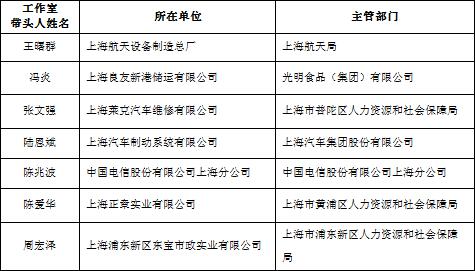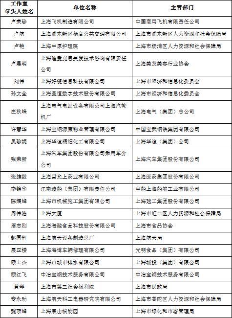 2017年上海市新建技能大師工作室名單