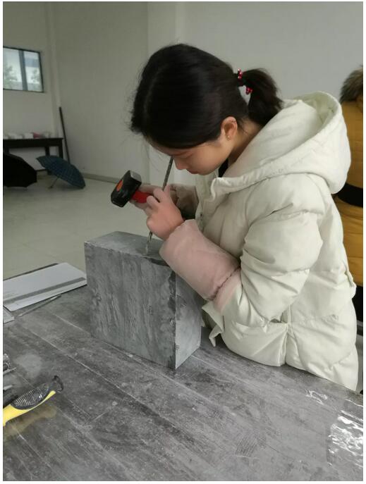 第一件作品完成后,老師一再強(qiáng)調(diào)多用刀、多觀察、多用尺子量,雖然諸多缺陷,也算勉強(qiáng)完成。在制作第二件作品時,我更加小心謹(jǐn)慎,有針對性地進(jìn)行改進(jìn)。如何畫線、如何下刀……在訓(xùn)練前能夠做到胸有成竹,雕刻時也會事半功倍。