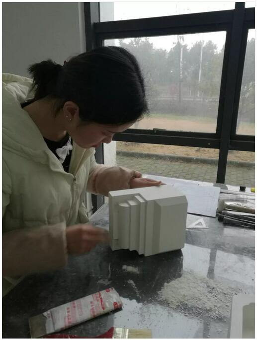 我最滿意的是最近的一個石膏作品。當(dāng)天老師拿來圖紙,我們按照圖紙分課時進(jìn)行訓(xùn)練。下午五點(diǎn)半,訓(xùn)練任務(wù)告一段落;我和室友約好去超市采購,思緒卻一直惦記著訓(xùn)練的事,室友都說我入了迷。返回學(xué)校已是晚上7點(diǎn),硬是把室友拉著一起去訓(xùn)練室練習(xí),一直到晚上十點(diǎn)左右。更加慶幸的是,在練習(xí)當(dāng)中發(fā)現(xiàn)作品與圖紙有出入,及時修正了錯誤,現(xiàn)在想來還隱隱有些后怕。訓(xùn)練漸入佳境,所學(xué)也越來越多,這也讓我對自己堅定了信心,相信以后的作品會越來越好。