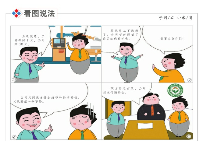 一年前,蘇某進(jìn)入這家公司。蘇某是該公司一條生產(chǎn)線上急缺的熟練工,而且錄用蘇某時(shí),另外還有兩家公司也同時(shí)向他伸出“橄欖枝”。為了表示誠(chéng)意、留住人才,該公司在與蘇某訂立的勞動(dòng)合同中,向他提供了許多優(yōu)厚條件。其中,公司不僅承諾給予他比其他同崗位員工更高的基本工資和加班費(fèi)計(jì)算標(biāo)準(zhǔn),還保證如因公司原因造成蘇某工資減少,每少支付1元,經(jīng)查實(shí)后,公司將賠償蘇某30元。