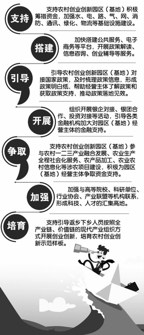圖表內容來源:農業(yè)部等十二部門《關于促進農村創(chuàng)業(yè)創(chuàng)新園區(qū)(基地)建設的指導意見》(本版圖表漫畫 小米繪)