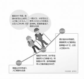 在采訪中,幾位全國政協(xié)委員對于我國老齡化速度都用了“超出想象”的表述,而事實(shí)上我國人口老齡化的確呈現(xiàn)出加速的趨勢。全國老齡辦公布的數(shù)據(jù)顯示,截至2017年底,我國60歲及以上老年人口達(dá)到2.41億人,占總?cè)丝?7.3%,其中去年新增老年人口首次超過1000萬。