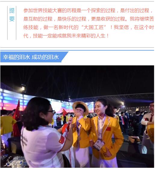 參加世界技能大賽的歷程是一個(gè)探索的過程,是付出的過程,是互助的過程,是快樂的過程,更是收獲的過程。